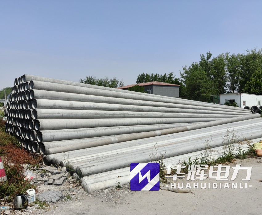 8米东兴水泥电线杆通常采用钢筋混凝土离心成型工艺,杆体呈锥形结构,梢径150mm-190mm,根径230mm-270mm,壁厚40mm-50mm。根据标准GB/T4623-2014,产品混凝土强度等级不低于C40,主筋采用HRB400级钢筋,配筋量根据抗裂弯矩要求设计,标准抗裂弯矩可达12-18kN·m,破坏弯矩不小于24kN·m。杆体重量约0.5-0.8吨,运输安装便捷,适合人工或小型机械施工。